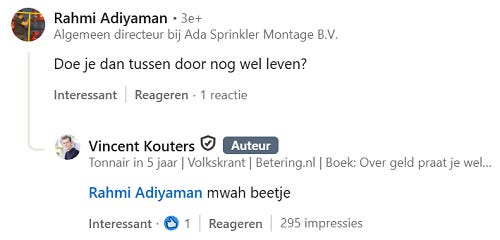 💼 Ondertussen op LinkedIn: Liever een ton op de bank, dan een miljoen in de muur.
