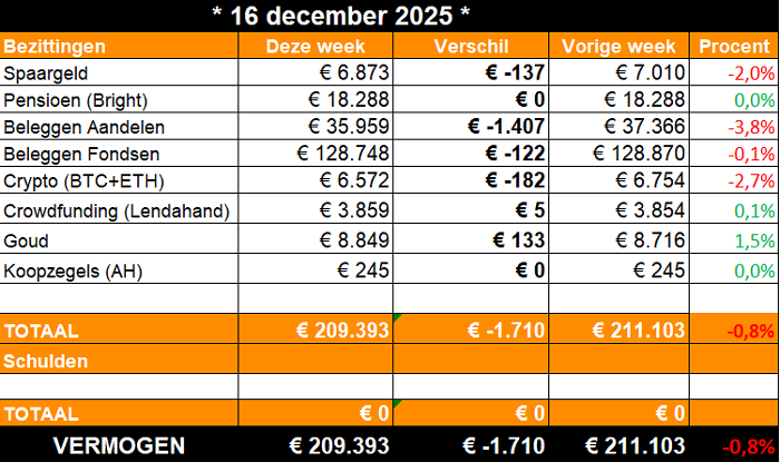 Zo voelt het de laatste weken. In september en oktober schoten we omhoog en ik door de twee ton. Nu alweer wekenlang een procentje per week omlaag. Irritant, maar dit is precies de reden waarom ik eigenlijk niet iedere week zou moeten kijken.