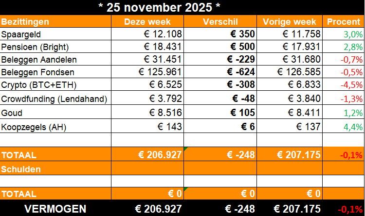 Deze week: decemberspaartips, meer pensioenbeleggen, zzp-liefde, De Geldvrienden, een kijkje in mijn portefeuille en meer.
