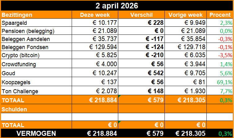 Vorige week had ik 1.930 euro. Deze week is dat 2.088 euro.