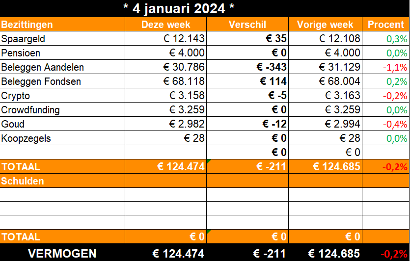 Na de 19% rendement van 2023, zal het lastig worden om in 2024 weer zo’n hoge winst te behalen. (Met een relatief behoudende portefeuille zoals die van mij.)