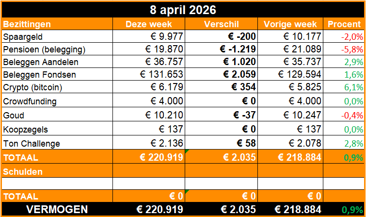 Vorige week had ik 2.088 euro. Deze week is dat 2.136 euro.