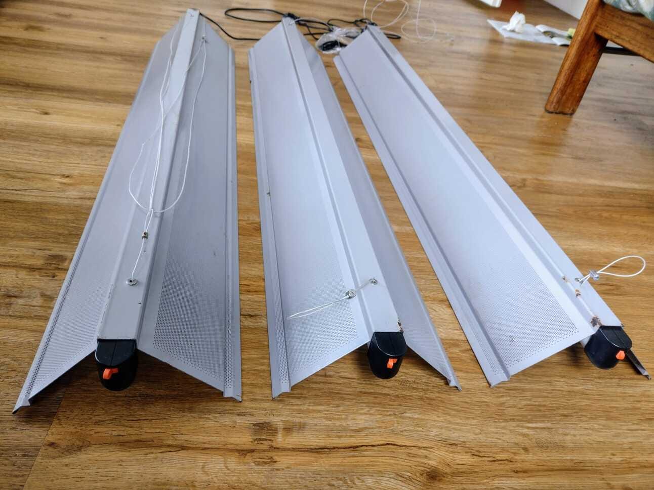 De lampen worden online aangeboden voor 250 tot 400 euro per stuk. Let wel: deze hebben enkele kleine roestplekjes. Meer foto’s op aanvraag.