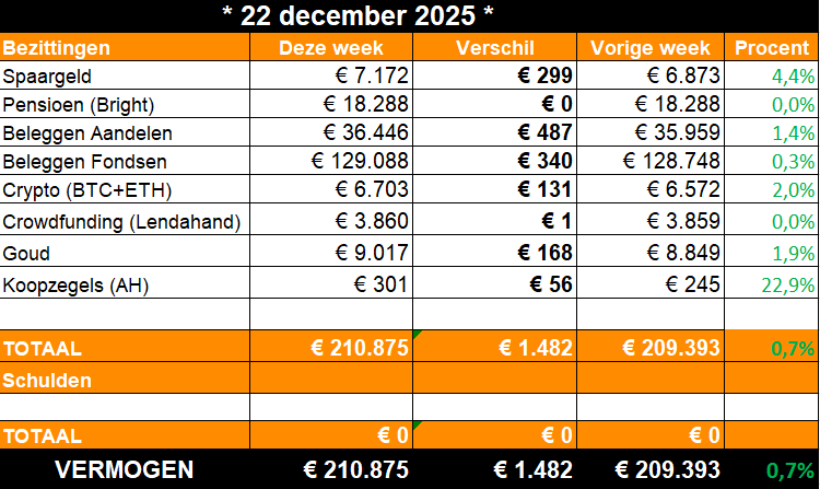 Volgende week kom ik met de jaarcijfers, het eindoverzicht. Ik kan nu al wel verklappen dat we het rendement dan 2024, 25%!, niet gaan halen.